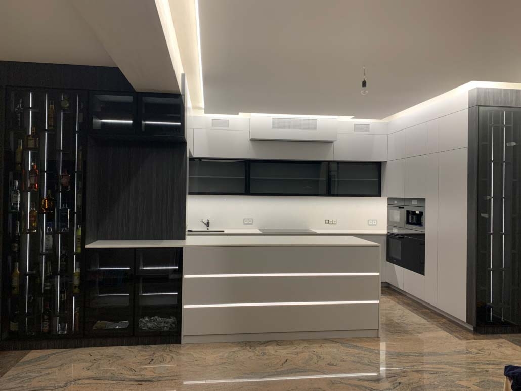 - Hangulatvilágítás: Egyedi konyhabútor esetén lehetőség van diszkrétebb világítási megoldásokra is, például a szekrények alá rejtett fényekre, amelyek nem csak hangulatosak, de praktikusak is.
